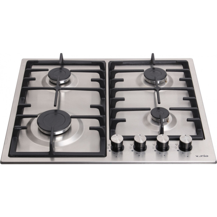 Варильна поверхня від компанії VENTOLUX призначена для вбудовування в кухонний гарнітур. Габарити даної моделі складають 59 х 5 х 51.5 см. Розміри ніші для вбудовування – 55 х 47 см. Поверхня пристрою виготовлена з нержавіючої сталі, решітки пальників – з чавуну. Панель управління, що складається з 4 ручок керування потужністю, розташовується в передній частині пристрою.