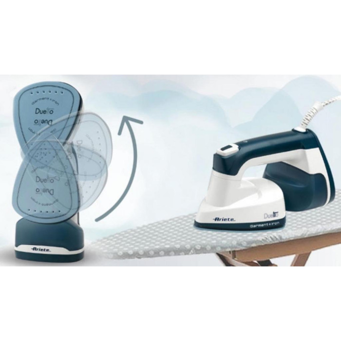 Відпарювач Ariete 6246 створений у вигляді парової праски, орієнтованої на два види прасування: горизонтальне і вертикальне. Горизонтальне прасування відбувається на дошці, де вельми зручно можна розташувати одяг, якому потрібно безпосереднє зіткнення з гарячою платформою. Вертикальний спосіб орієнтований більше на віддалений паровий вплив, тому, повісивши річ на плечіки, ви з легкістю обробите її парою, виключаючи ймовірність травмування тканини.