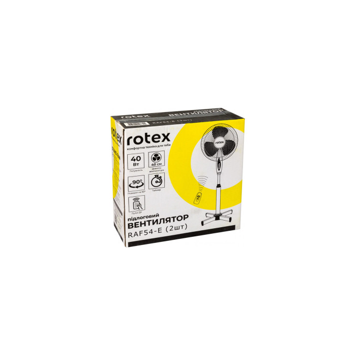 Підлоговий вентилятор Rotex RAF54-E виконаний в класичному дизайні. Він розмістився на довгій і регульованою ніжці, яка, як і показник потужності в 40 Вт, дозволяє йому обслуговувати площа в 10 квадратних метрів. Вентилятор має три пластиковими лопатями, які крутяться в трьох швидкісних режимах, забезпечуючи найефектніший результат.