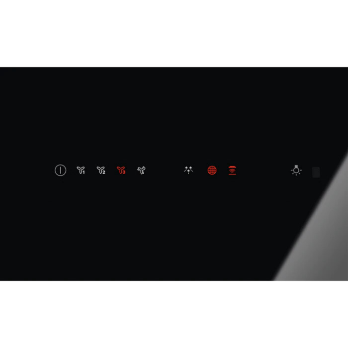 Стильна панель керування зі скла вирізняється ідеальною інтеграцією. Електронне керування дає змогу швидко і точно відрегулювати настроювання витяжки та режими роботи.