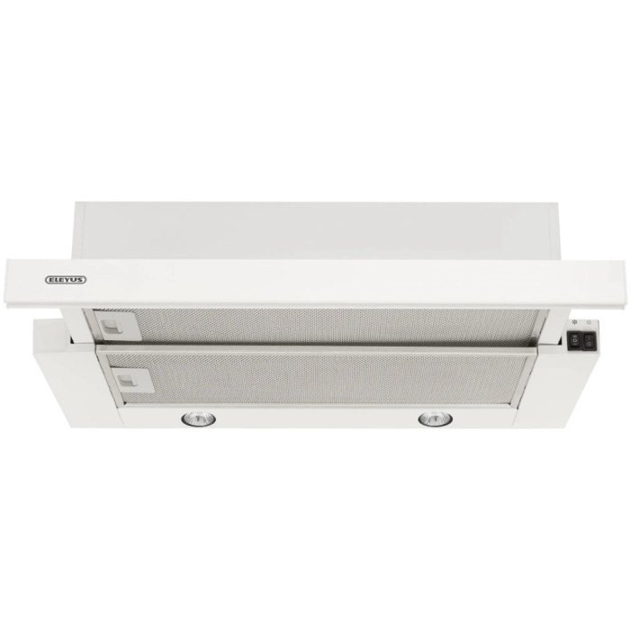Витяжка ELEYUS BREEZE 700 60 WH - телескопічна пристінна витяжка білого кольору з висувною панеллю і механічним управлінням.