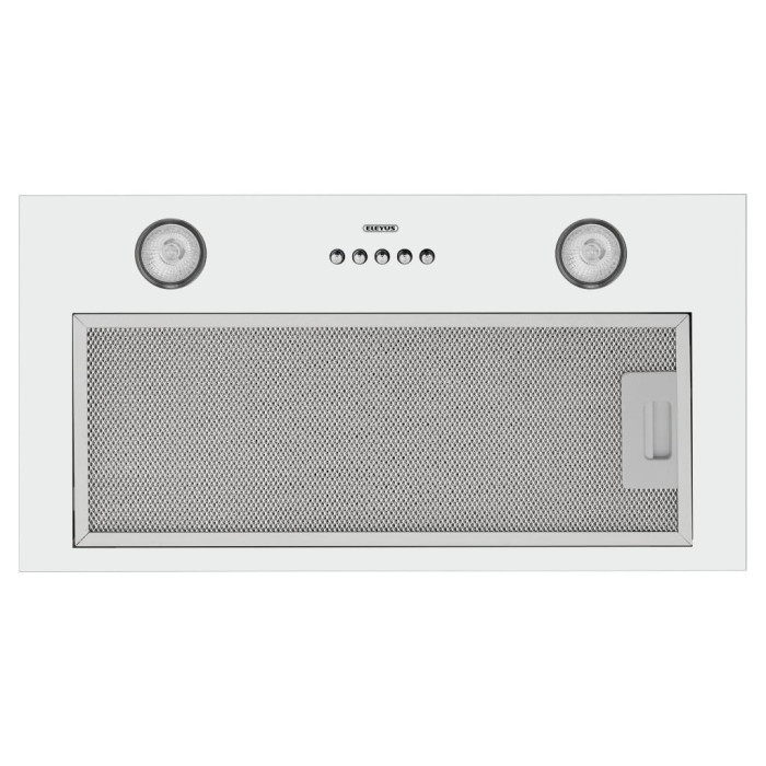 Витяжка Eleyus INTO 700 52 WH призначена для повного вбудовування в нішу, де вона займе своє місце. Монтаж техніки передбачає відкриту нижню частину, яка активно виконує свої функції: повітря безперешкодно надходить в витяжний отвір безпосередньо з плити, проходячи найменший шлях до пристрою.