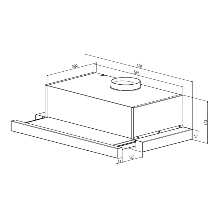 Надійний сталевий корпус покритий порошковою фарбою для відмінного захисту і стійкості до високих температур. Чудове інтегрування у кухонну шафку забезпечено завдяки компактному розміру витяжки і є вірним рішенням для збільшення вільного кухонного простору.