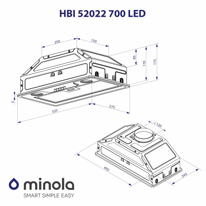 Витяжка кухонна Minola HBI 52022 BL 700 LED