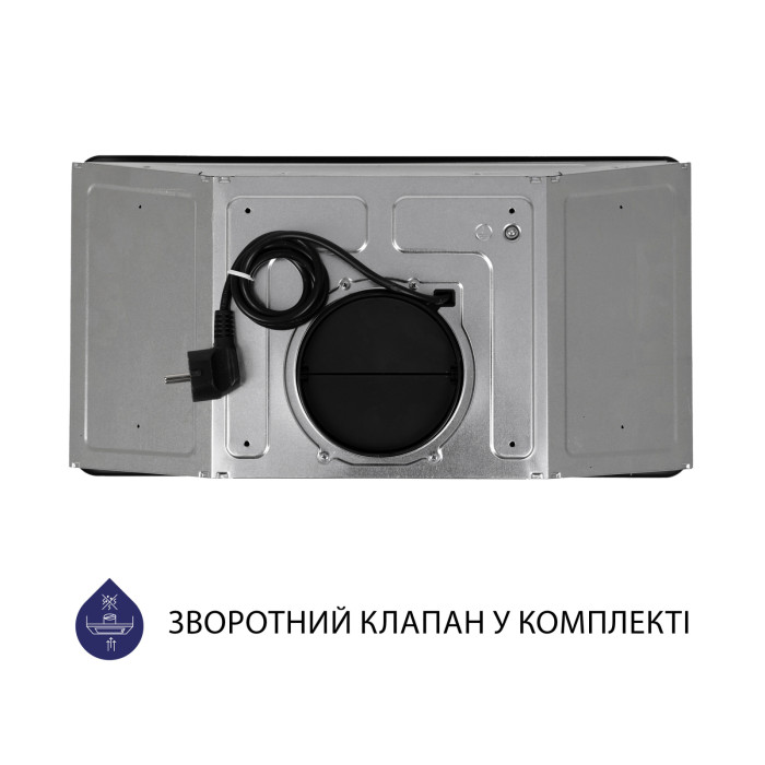 Алюмінієвий фільтр виконаний у тому ж кольорі, що і пристрій. Таке дизайнерське рішення робить витяжку стильною та елегантною, завдяки чому вона гармонійно виглядатиме в інтер'єрі кухні.