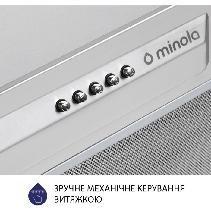 Завдяки чудовим ергономічним якостям, якими наділена модель Minola HBI 5324 I 800 LED, вона підійде як маленькій, так і стандартній кухні. Частина конструкції пристрою, яка має бути прихована від очей, повністю ховається у шафі, а робоча частина залишається на виду та органічно доповнює загальний дизайн. Відкрита частина витяжки виготовлена з нержавіючої сталі. Цей матеріал, крім візуальної привабливості, дуже легкий у догляді і має високу стійкість до зовнішніх впливів.