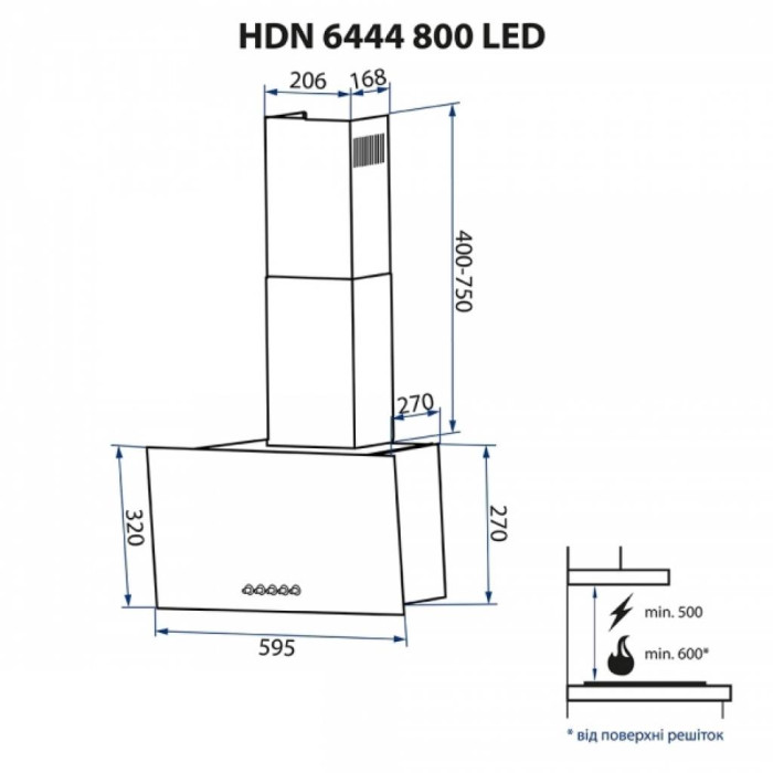 Витяжка кухонна Minola HDN 6444 BL 800 LED
