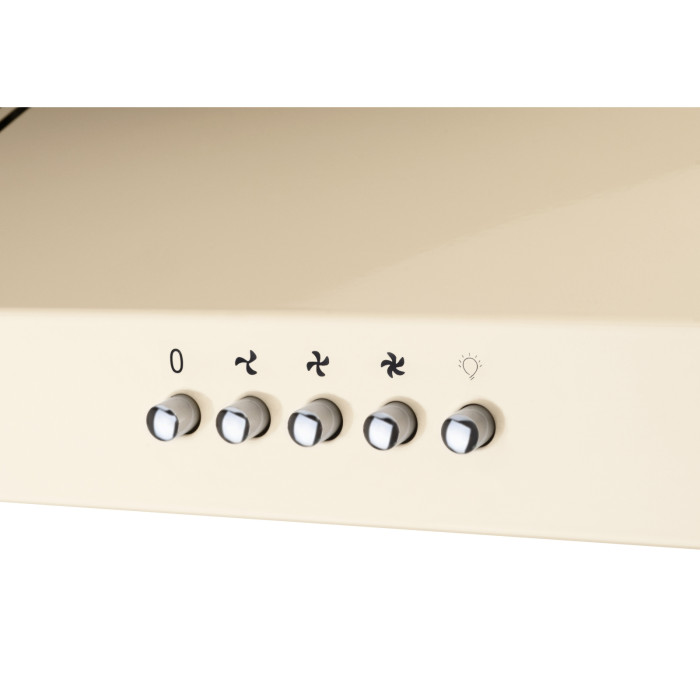 Механічна панель управління дуже проста та інтуїтивно зрозуміла. На ній розташовані перемикачі для увімкнення/вимкнення витяжки, освітлення та перемикання швидкостей. Активувати потрібну функцію можна одним натиском. Механічні перемикачі управління найбільш надійні та довговічні.