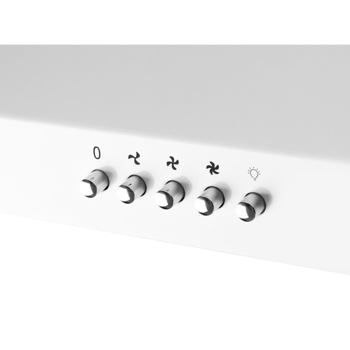 Механічна панель управління дуже проста та інтуїтивно зрозуміла. На ній розташовані перемикачі для увімкнення/вимкнення витяжки, освітлення та перемикання швидкостей. Активувати потрібну функцію можна одним натиском. Механічні перемикачі управління найбільш надійні та довговічні.