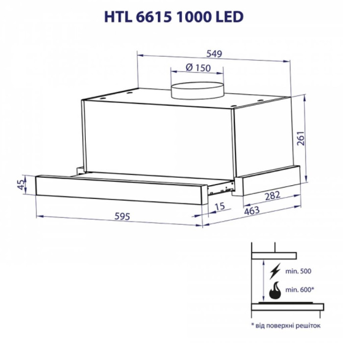 Витяжка кухонна Minola HTL 6615 IV 1000 LED