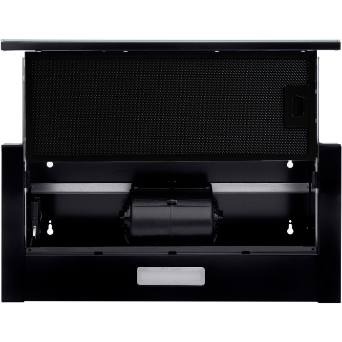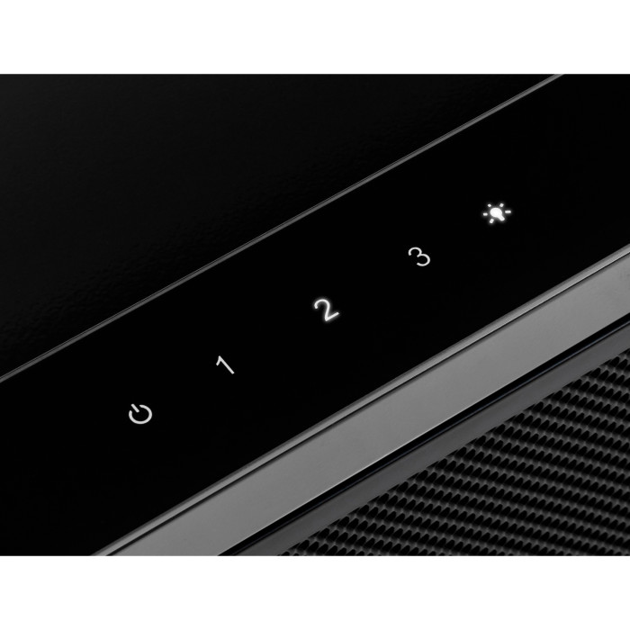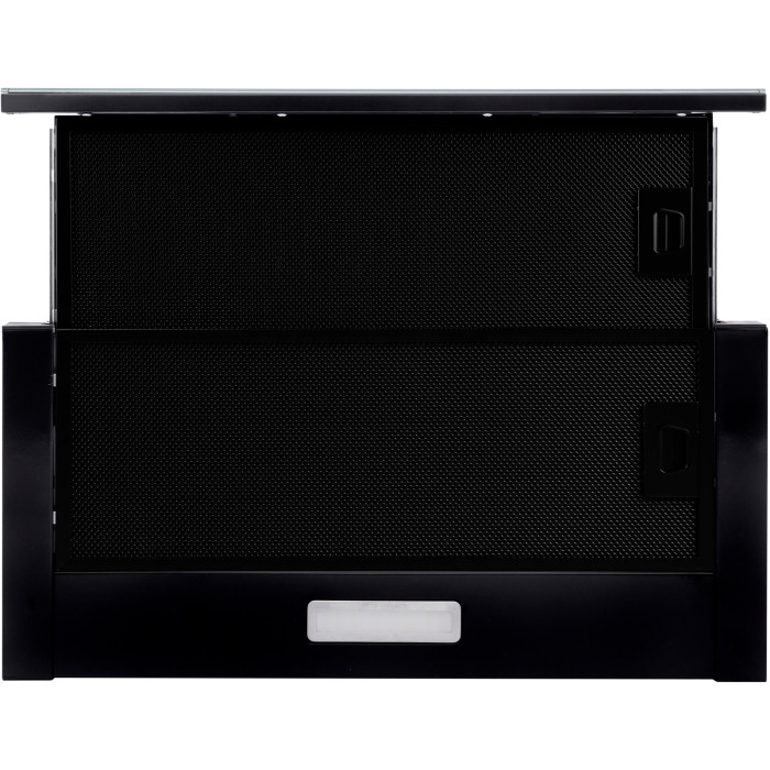 Декоративна висувна панель витяжки виготовлена із загартованого скла чорного кольору, що відрізняється високою жаростійкістю, стійкістю до механічних пошкоджень та своїм естетичним виглядом, що прийдеться до душі будь-якому кулінару.