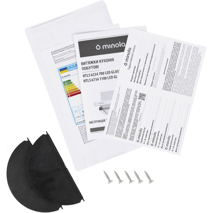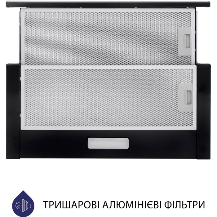 Кухонна витяжка Minola HTLS 6734 BL 1100 LED GLASS обладнана двома тришаровими жировими алюмінієвими фільтрами. Вони забезпечують надійний і ефективний захист двигуна та інших деталей витяжки від потрапляння жиру та бруду.