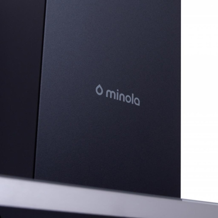 На декоративній скляній панелі витяжки Minola HVS 6222 700 LED розташована сенсорна панель керування, на якій зображені символи ввімкнення приладу, перемикання швидкостей роботи, а також ввімкнення освітлення. Прилад додатково обладнаний функцією таймера, який автоматизує роботу витяжки.
