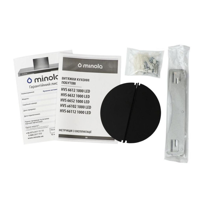 Щоб забезпечити режим рециркуляції слід обладнати витяжку двома вугільними фільтрами MINOLA HVS 66112 і залишити вільним вихід повітря з турбіни в простір приміщення. Витяжка обладнана двома галогенними лампами, які відрізняються своєю довговічністю і приємний світлом. Лампи м'яко і ефективно висвітлять вашу кухню Фасад з загартованого скла з дзеркальним ефектом не тільки надає витяжці доконаного виду, але і робить догляд за нею легким і приємним.