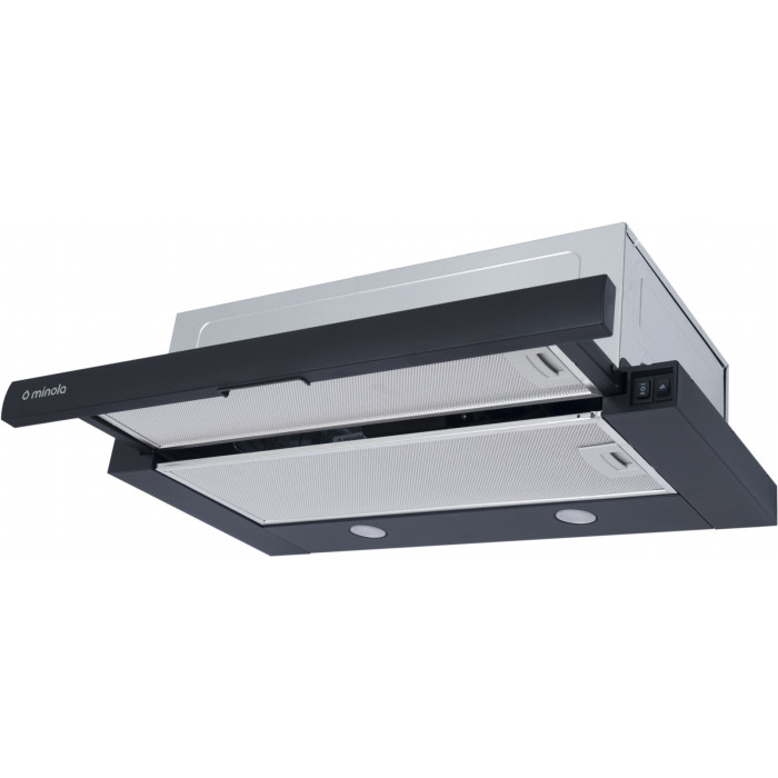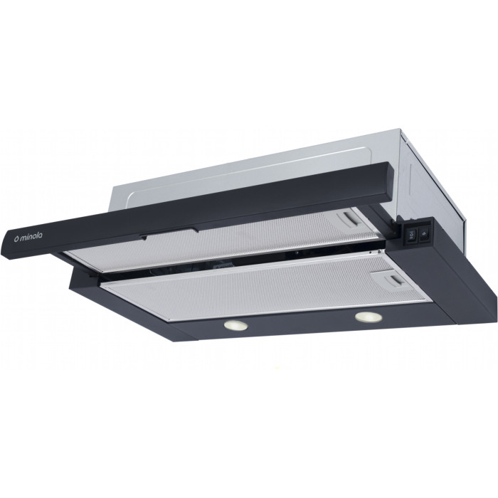 Телескопічна кухонна витяжка Minola базової комплектації оснащена одним двигуном. Витяжка характеризується типом монтажу, що вбудовується, основна частина конструкції ховається, а висувна панель доступна для використання цілодобово. Корпус виготовлений з металу, він простий у догляді та має антикорозійні властивості. Максимальна продуктивність дозволить ефективно впоратися із завданням з очищення повітря на Вашій кухні.