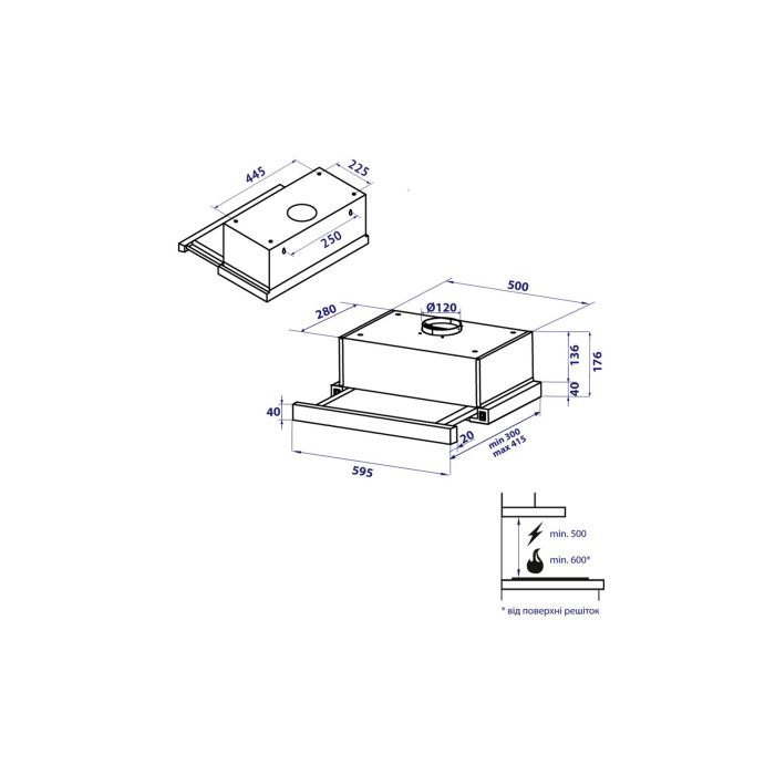 Витяжка кухонна Minola MTL 6292 BL 700 LED