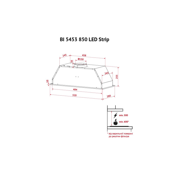 Витяжка кухонна Perfelli BI 5453 WH 850 LED Strip