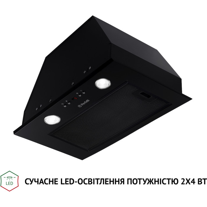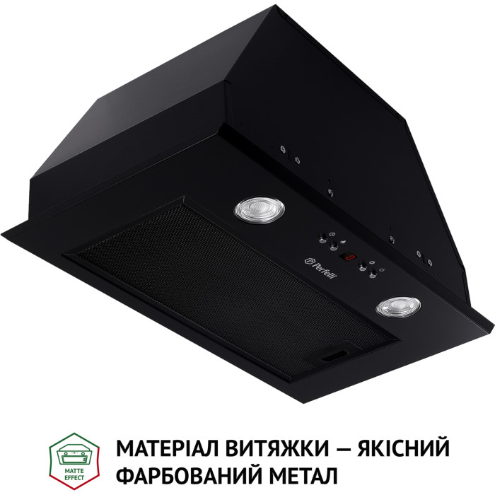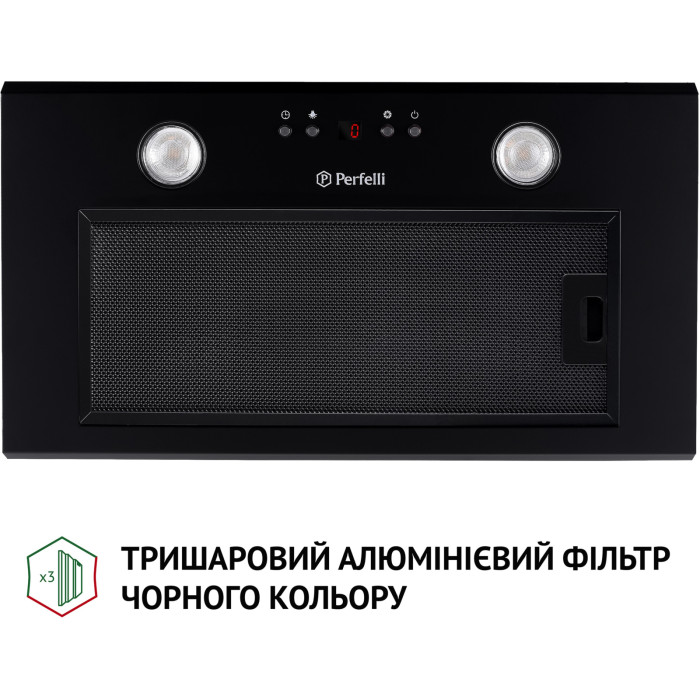 Повновбудована витяжка Perfelli BIET 5854 1200 LED – приваблює дизайном та сучасним підходом у розробці витяжок для всіх, хто бажає зробити свою кухню стильною та функціональною. При високій потужності з вільним виходом повітря в 1200 м3/год витяжка має досить низький рівень шуму – 70 дБ. Витяжка бездоганно виконує свої функції за лічені хвилини. Вона очищає повітря від неприємних запахів та випарів під час та після приготування, підтримуючи свіжість у приміщенні. Стандартна ширина пристрою – 52 см, що дозволяє використовувати її на кухні будь-яких розмірів.