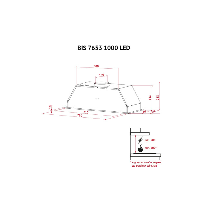 Витяжка кухонна Perfelli BIS 7653 WH 1000 LED