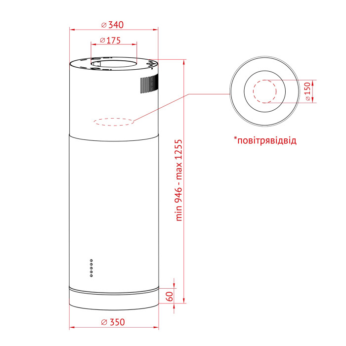 відведення повітря і рециркуляція