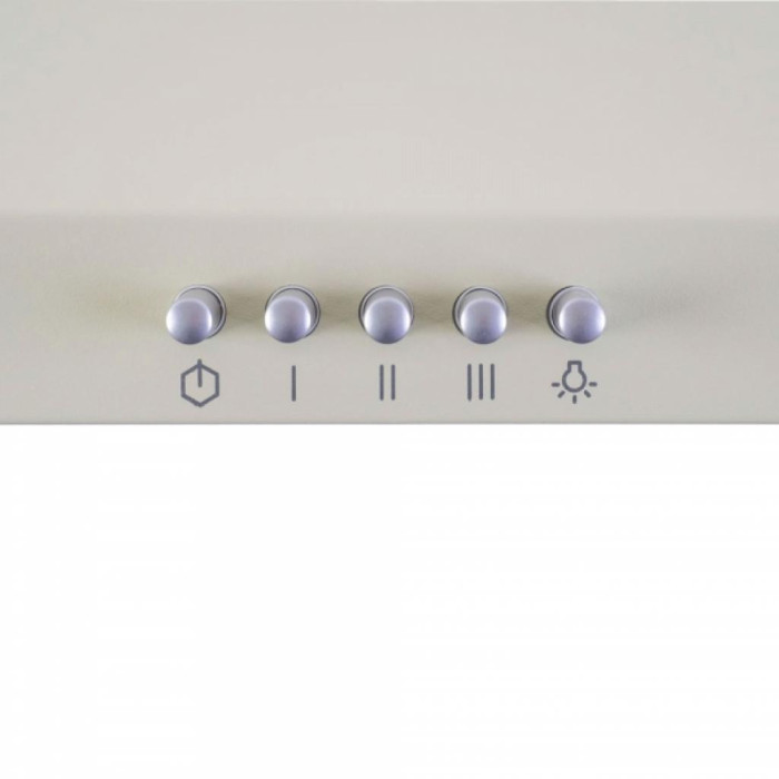На передній панелі розташовується механічне кнопкове управління, де знаходяться клавіші перемикання швидкостей роботи витяжки, включення освітлення і виключення приладу.