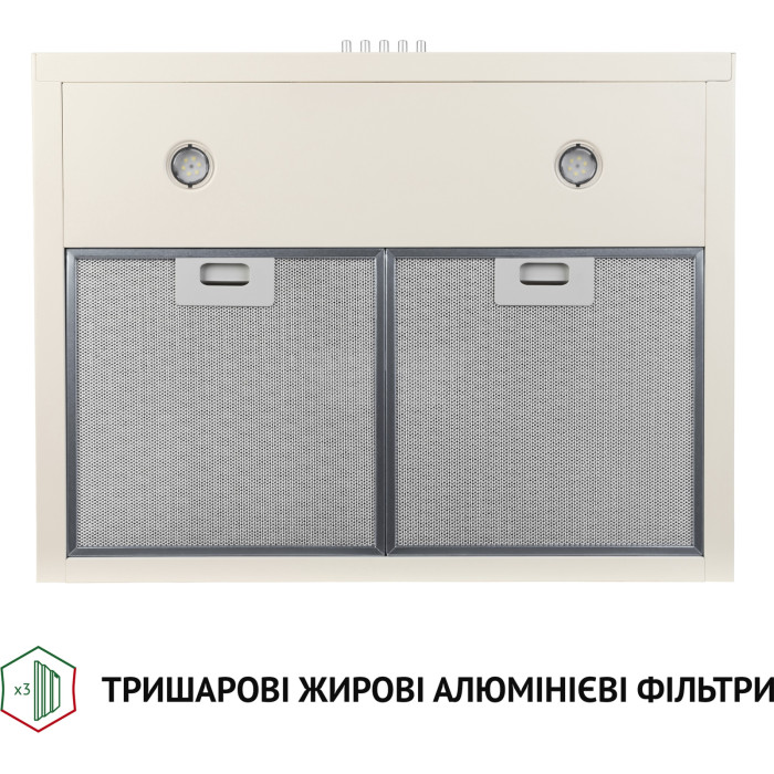 Максимальна продуктивність у режимі відведення 700 куб. м/год, що дозволяє повністю очистити повітря у кухонному приміщенні.
