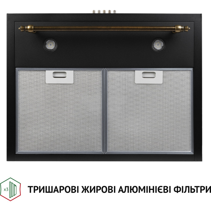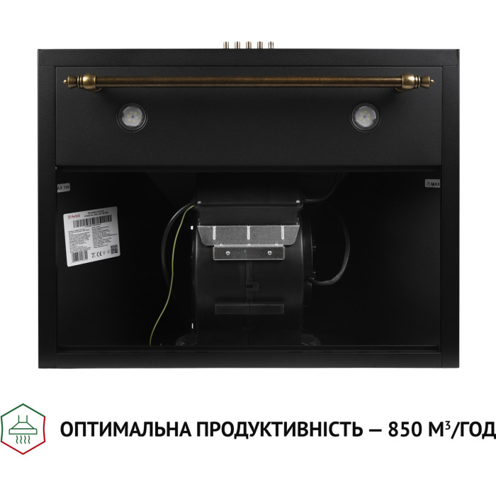 Максимальна продуктивність у режимі відведення 700 куб. м/год, що дозволяє повністю очистити повітря у кухонному приміщенні.