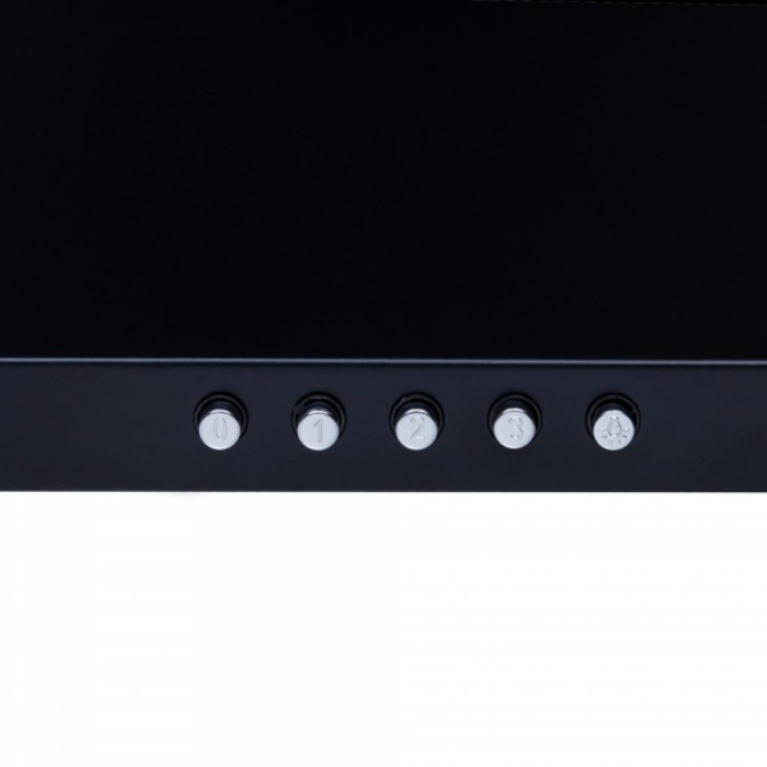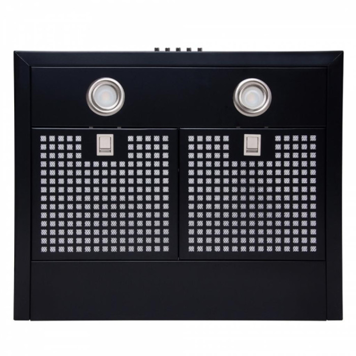 На передній панелі розташоване механічне кнопкове управління, де знаходяться клавіші перемикання швидкостей роботи витяжки, ввімкнення освітлення та вимкнення приладу.