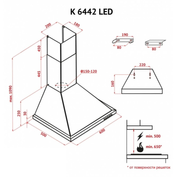 Зручна, легка у керуванні, ефективна – саме так можна описати пристінну витяжку Perfelli K 6442 LED. Виготовлена купольної форми, дана витяжка не тільки забезпечить справжній домашній затишок на Вашій кухні, а ще ефективно видалить усі небажані запахи, випаровування та кіптяву.