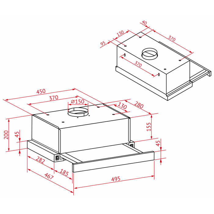 Керувати витяжкою зручно та легко! Механічна панель управління складається з перемикачів швидкостей та увімкнення/вимкнення освітлення. Практичне розташування механічних перемикачів керування з боків дозволить здійснювати швидкі маніпуляції з пристроєм без зайвих зусиль.