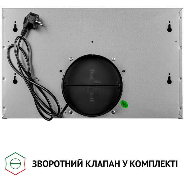 Освітлення витяжки складається з двох LED-ламп, потужністю по 1.5 Вт, які розташовані на задній частині витяжки та сприяють кращому освітленню робочої поверхні. Підсвічування є комфортним для очей і працює як додаткове джерело освітлення на кухні. Робочий ресурс світлодіодів у рази вищий, ніж у звичайних ламп, а споживання енергії мінімальне. Крім того, світлодіоди досить витривалі під час активної експлуатації.