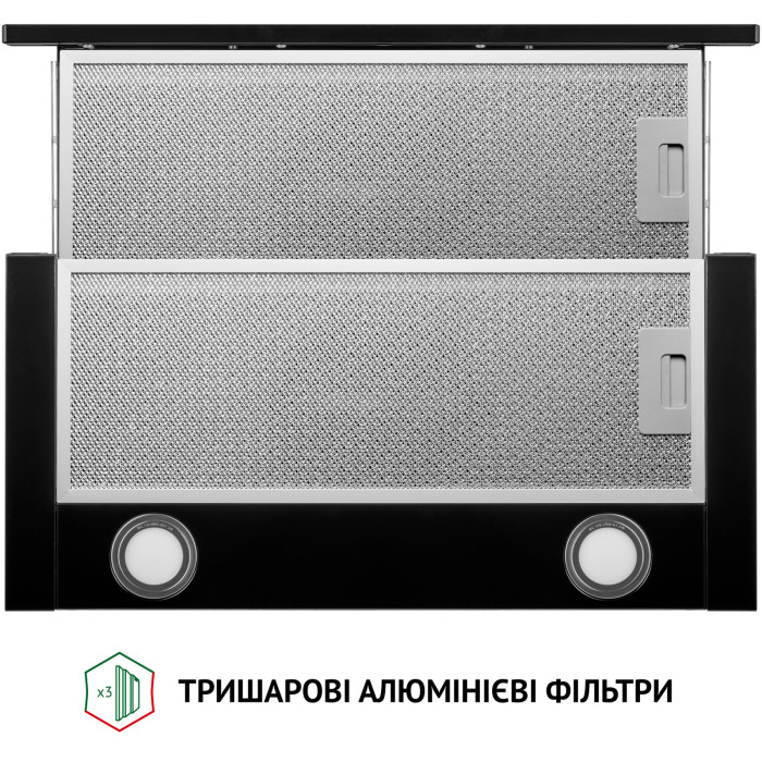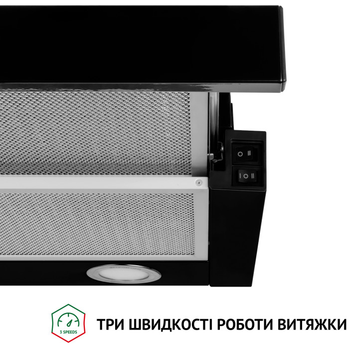 Витяжка для кухні працює на трьох швидкостях, що дозволяє обирати потрібну інтенсивність очищення повітря залежно від його забрудненості.