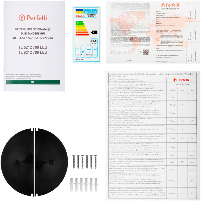 Телескопічна кухонна витяжка Perfelli TL 6212 WH 700 LED має ергономічні властивості, тому дозволяє раціонально використовувати простір у зоні над варильною поверхнею. Конфігурація моделі включає: