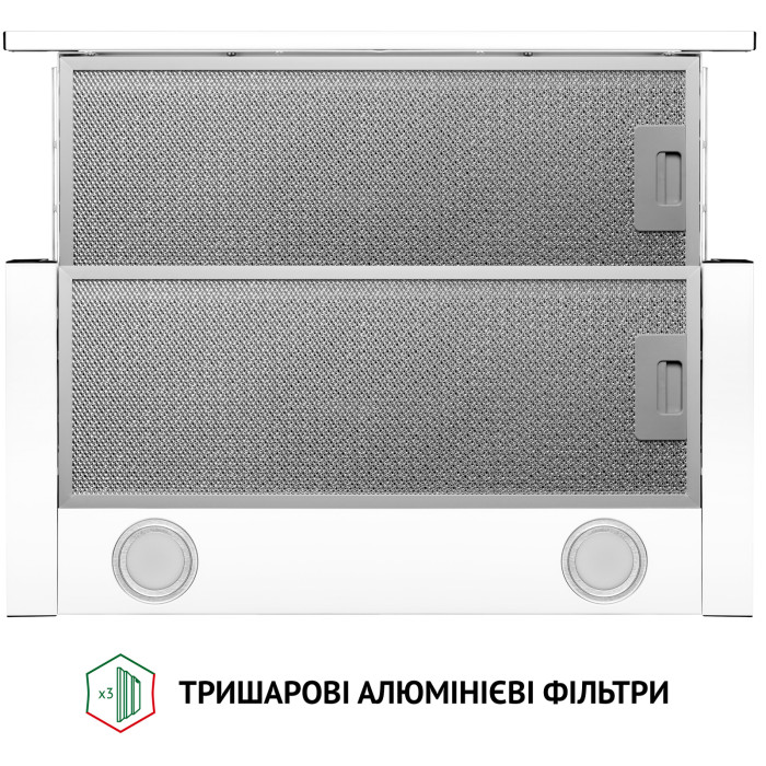 Витяжка для кухні працює на трьох швидкостях, що дозволяє обирати потрібну інтенсивність очищення повітря залежно від його забрудненості.