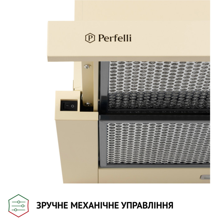 Телескопічна витяжка Perfelli TL 6316 700 LED спроектована таким чином, що більша частина її конструкції ховається у навісну кухонну шафу. Очевидною залишається тільки висувна панель, яка задіюється під час роботи і виглядає дуже стильно. Цей тип витяжки ідеально впишеться у сучасний інтер'єр. Ширина приладу складає 60 см — це універсальний розмір, який підходить для розміщення над варильною поверхнею приблизно такого ж розміру.