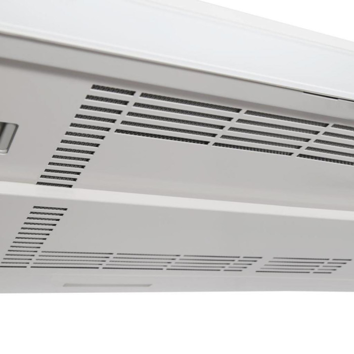 Пристрій оснащений одним мотором і чотирма швидкостями роботи. Гучність досягає 55 децибел. Продуктивність дорівнює 1200 кубічних метрів на годину. Ширина дорівнює 90 сантиметрам. Є вбудований таймер. Освітлення здійснюється за рахунок двох смуг LED з потужністю в 2.1 ват кожна. Потужність мотора дорівнює 250 ватам.