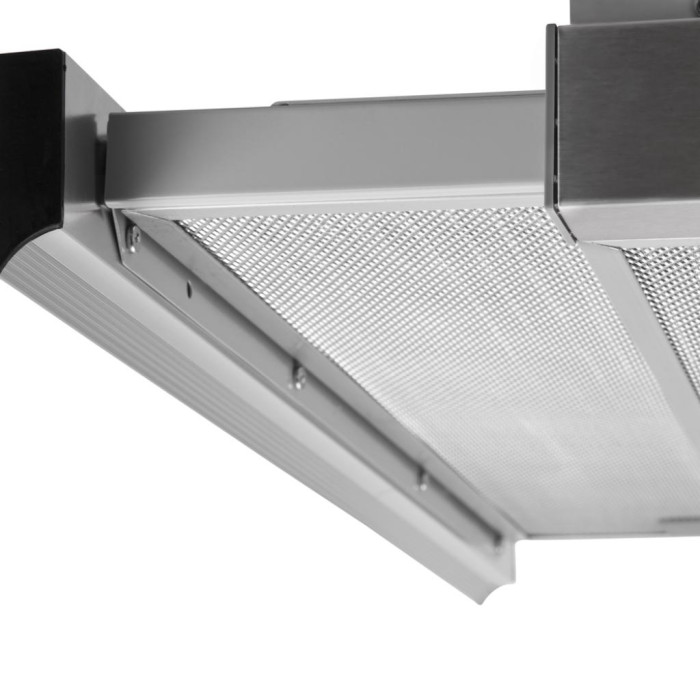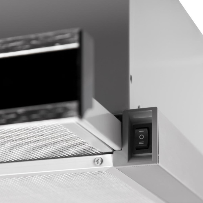 Телескопічний дизайн дозволяє легко вмонтувати витяжку в кухонну шафу, що дає можливість додаткової економії місця, і ваша кухня буде виглядати стильно і сучасно, при цьому не з'їдаючи зайвого простору. Видима панель, виконана в чорному кольорі, відмінно підійде до кухні та плиті будь-якого дизайну, а вбудоване підсвічування, розташована в нижній частині витяжки, зробить процес приготування їжі справжнім задоволенням.