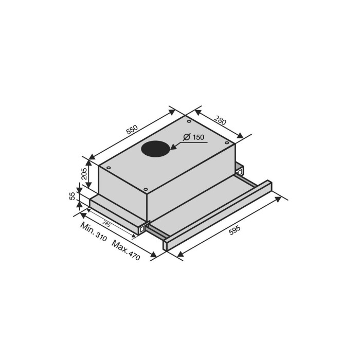 - Вбудований тип монтажу дозволяє використовувати ще одну кухонну шафку, що неможливо у випадку з похилими або Т-подібними витяжками.