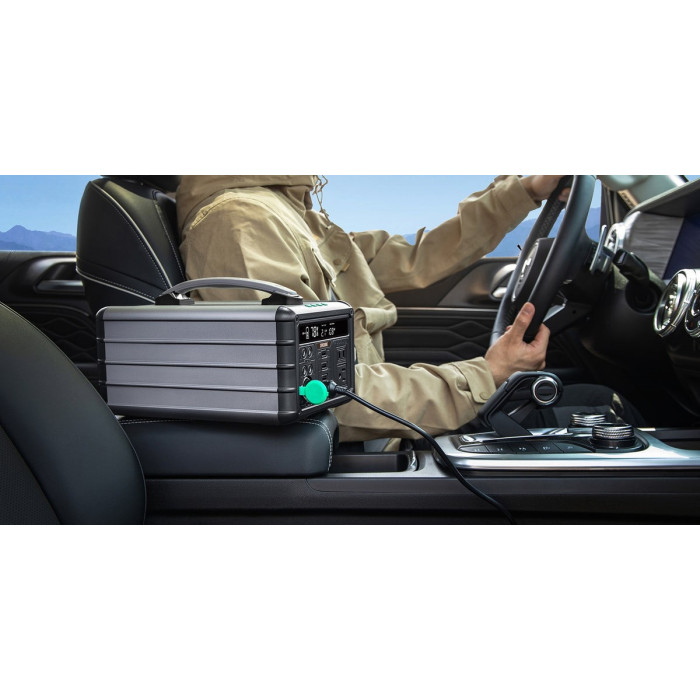 - Повна батарея за 4.5 години: Заряджай станцію комплектним адаптером DC5521 і через порти прикурювача та USB-C на сумарній потужності 346W.