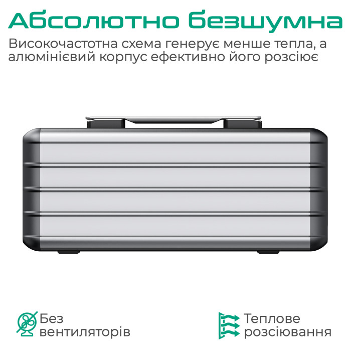 - Абсолютно безшумна: У станції використовується високочастотна схема, яка в цілому генерує менше тепла, а алюмінієвий корпус ефективно його розсіює.