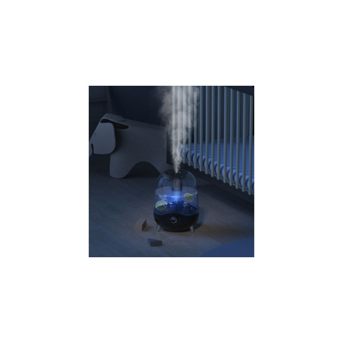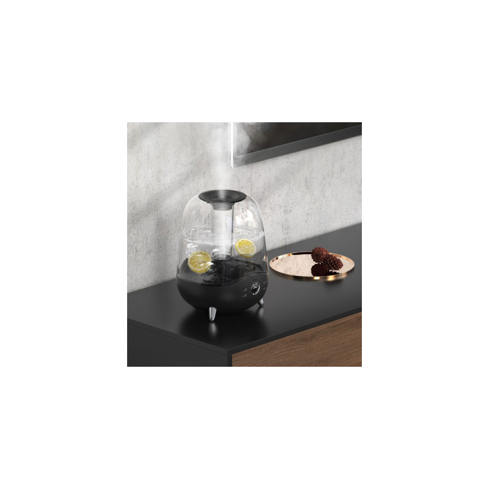 Для зміни інтенсивності зволоження або програмування таймера потрібно лише натиснути на кнопку на корпусі, позначену інтуїтивно зрозумілою піктограмою. Великий інформативний дисплей виводить дані про роботу зволожувача в зручному для розуміння форматі.